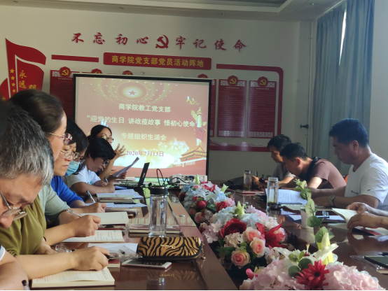 7月13日下午,商学院教工党支部召开了以“庆祝建党99周年专题学习暨支部整改工作通报”为主题的党员大会。党员集中学习了中央党校中共党史教研部《学习习近平总书记关于党史国史的重要思想》和人民网《聆听习近平关于党史国史的重要论述》。随后,支部教师开展了讨论交流,郭毅玲、毛雪艳、丁璇、刘佩莉四位教师在会上做了精彩发言。会后,支部书记坚徳慧向支部党员汇报上半年“四抓两整治”以及软弱涣散党支部整改工作推进情况。